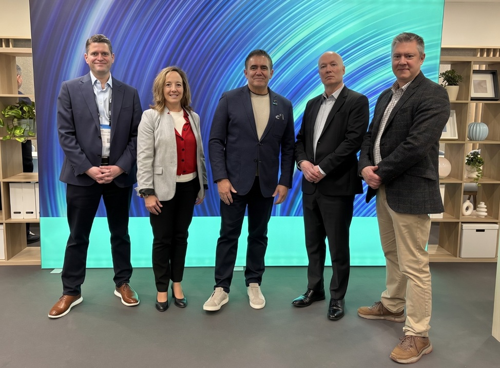 Фото Слева направо: Пол Каллингтон (HPE Networking), Лаура Кампо (SITA), Джеймс Каселла (HPE Networking), Мартин Смилли (SITA), Джон Кларк (HPE Networking), на Mobile World Congress.